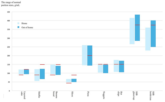 3.2. The Range of Normal Portion Sizes and Differences by Settings