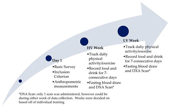 Training Conditions: Two separate training weeks were used to assess differences between EA, CA, and hormone levels. A high-volume (HV) training week consisted of ≥5 days of training and included ≥10 h of training within a 7-consecutive day week. A low-volume (LV) training week (identified as a recovery week) was defined as an unloading week for the participant. No specific requirements were established for the LV week, except participants were asked to work out a minimum of 2–3 days for the 7-consecutive-day week.