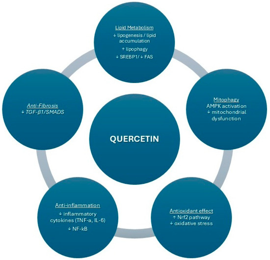 Current research on quercetin’s role in autophagy, lipophagy, and the alleviation of hepatic steatosis and inflammation is limited, creating uncertainty about its efficacy against MASLD. Additional experimental and clinical studies are required to clarify the role of quercetin in MASLD.