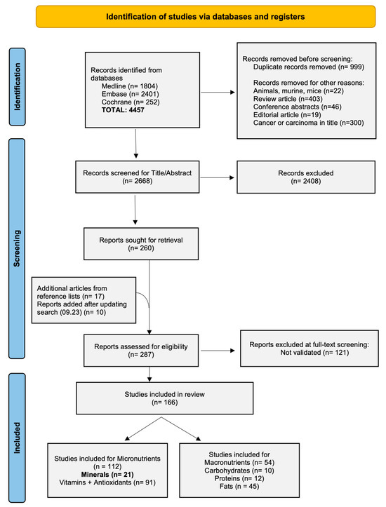 The following supporting information can be downloaded at: https://www.mdpi.com/article/10.3390/nu16223793/s1, Table S1: Inclusion and exclusion criteria. Table S2: PICOC methodology. Table S3: Search strategies for the systematic literature search. Table S4: Case-Control Studies. Table S5: Cross-Sectional Studies. Table S6: Case Series. Table S7: Quasi-Experimental Studies. Table S8: Qualitative Research. Table S9: Iron parameter study.