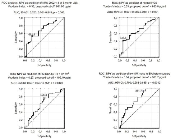 3.2. Prognostic Value of Preoperative NPY (Receiver Operating Characteristic [ROC] Analysis)