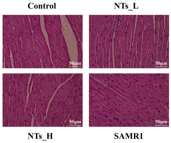 3.1. Effects of NTs on the Cardiac Tissue Morphology in SAMP8 Mice