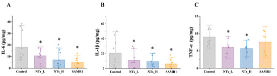 3.3. Effects of NTs on Inflammatory Markers in SAMP8 Mice