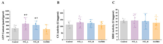 3.4. Effects of NTs on Mitochondria Function in SAMP8 Mice
