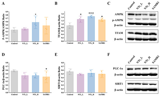3.6. Effect of NTs on Mitochondria Biogenesis in SAMP8 Mice
