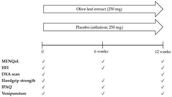 The aim of this randomized, double-blind, placebo-controlled, parallel study was to determine the effect of 12 weeks of 250 mg/day of OLE supplementation on menopause-related quality of life, body composition, muscle strength, and blood lipid profile in postmenopausal women (45–70 y) compared to control (cellulose).