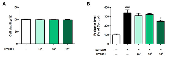 3.2. Effects of HY7801 on Secretion of Prolactin by E2-Treated GH3 Cells