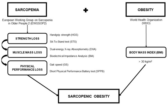 - Donini, L.M.; Busetto, L.; Bischoff, S.C.; Cederholm, T.; Ballesteros-Pomar, M.D.; Batsis, J.A.; Bauer, J.M.; Boirie, Y.; Cruz-Jentoft, A.J.; Dicker, D.; et al. Definition and Diagnostic Criteria for Sarcopenic Obesity: ESPEN and EASO Consensus Statement. Obes. Facts 2022, 15, 321–335. [Google Scholar] [CrossRef] [PubMed]