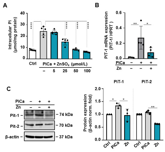 3.5. Zinc Prevents PiCa-Mediated Phosphate Uptake