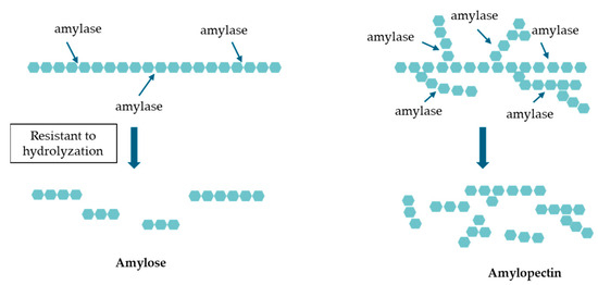 - van Amelsvoort, J.M.; Weststrate, J.A. Amylose-amylopectin ratio in a meal affects postprandial variables in male volunteers. Am. J. Clin. Nutr. 1992, 55, 712–718. [Google Scholar] [CrossRef]