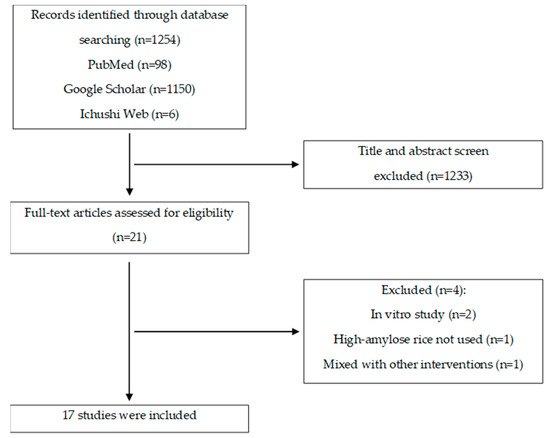 APA StyleLi, J., Yoshimura, K., Sasaki, M., & Maruyama, K. (2024). The Consumption of High-Amylose Rice and its Effect on Postprandial Blood Glucose Levels: A Literature Review. Nutrients, 16(23), 4013. https://doi.org/10.3390/nu16234013