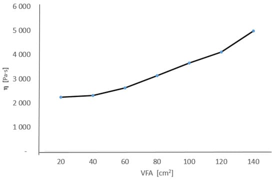 As VFA (visceral fat area) values depend on the structure of one’s diet, an attempt was made to demonstrate the dependence of viscosity on this parameter (Figure 6). In all patients, lower whole-blood apparent viscosity values were found as the VFA values decreased.