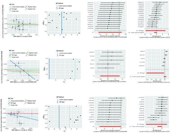 To assess the potential causal relationship between these exposures and AF and heart failure, we performed sensitivity analyses, including tests of heterogeneity and tests of pleiotropy. Table 2 shows the results of sensitivity analyses by different methods. The results of the heterogeneity test (heterogeneity test) and the pleiotropy test (pleiotropy test) were as follows:
