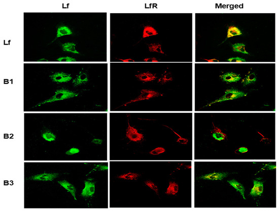 3.3. Binding of Lf to the LfR and Internalization by Intestinal Epithelial Cells