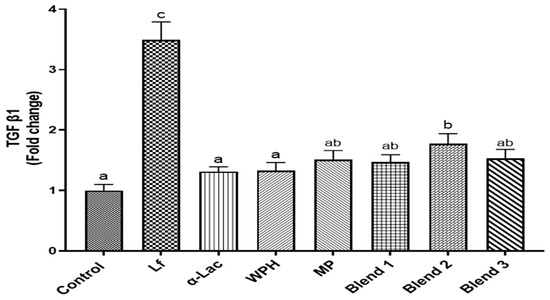 3.6. Effects of Proteins and Protein Blends on Transcription of the TGF-β1 Gene
