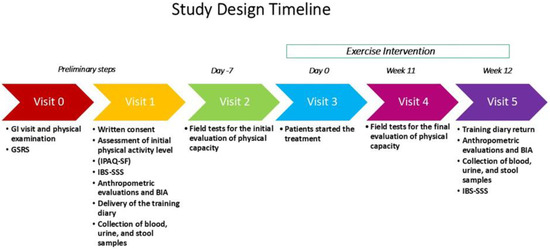- Riezzo, G.; Prospero, L.; D’Attoma, B.; Ignazzi, A.; Bianco, A.; Franco, I.; Curci, R.; Campanella, A.; Bonfiglio, C.; Osella, A.R.; et al. The Impact of a Twelve-Week Moderate Aerobic Exercise Program on Gastrointestinal Symptom Profile and Psychological Well-Being of Irritable Bowel Syndrome Patients: Preliminary Data from a Southern Italy Cohort. J. Clin. Med. 2023, 12, 5359. [Google Scholar] [CrossRef]