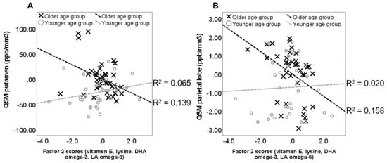 - Zachariou, V.; Bauer, C.E.; Seago, E.R.; Panayiotou, G.; Hall, E.D.; Butterfield, D.A.; Gold, B.T. Healthy dietary intake moderates the effects of age on brain iron concentration and working memory performance. Neurobiol. Aging 2021, 106, 183–196. [Google Scholar] [CrossRef] [PubMed]