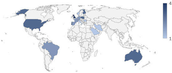Demographically, the majority (n = 28) have been conducted in Europe, with the remaining carried out in North America (n = 3), Oceania (n = 3), South America (n = 2), and Asia (n = 3). Multi-country studies (n = 6) are not included in the demographic frequency count (Figure 3).