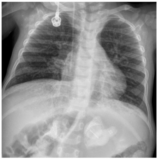 The onset of symptoms is during the first weeks of life, usually before the age of one month. The main clinical manifestations of infantile-onset LAL-D include digestive disorders, such as malabsorption, steatorrhea, vomiting, and diarrhea, leading to malnourishment and failure to thrive, as well as persistent abdominal distension with hepatosplenomegaly (Table 1) [10]. The presence of adrenal calcifications (Figure 1) strongly suggests LAL-D, although their absence does not rule out the disease, particularly in the early stages. These calcifications can be detected using imaging methods, such as abdominal X-ray, ultrasound, and computed tomography (CT) scan [11]. Hemophagocytic lymphohistiocytosis (HLH) is common at diagnosis in patients with rapidly progressive infantile-onset LAL-D [12,13,14,15,16]. HLH is due to uncontrolled immune activation with an acute and rapidly progressive systemic inflammatory response. The accumulated lipids activate macrophages, leading to their transformation into foam cells. The activated macrophages produce proinflammatory cytokines, which contribute to systemic inflammation [17]. If specific treatment is not initiated in a timely manner, the prognosis of patients with HLH and underlying infantile-onset LAL-D is severe or even fatal [12,15,18].