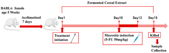 - Hamouda, N.; Sano, T.; Oikawa, Y.; Ozaki, T.; Shimakawa, M.; Matsumoto, K.; Amagase, K.; Higuchi, K.; Kato, S. Apoptosis, Dysbiosis and Expression of Inflammatory Cytokines are Sequential Events in the Development of 5-Fluorouracil-Induced Intestinal Mucositis in Mice. Basic. Clin. Pharmacol. Toxicol. 2017, 121, 159–168. [Google Scholar] [CrossRef] [PubMed]