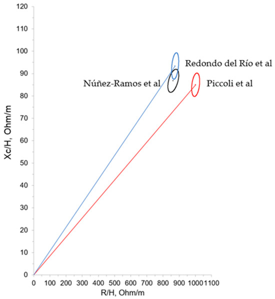 Figure 6. Individual impedance vectors in Redondo et al.’s [20] ellipses.