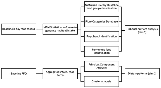 - Zhao, J.; Li, Z.; Gao, Q.; Zhao, H.; Chen, S.; Huang, L.; Wang, W.; Wang, T. A review of statistical methods for dietary pattern analysis. Nutr. J. 2021, 20, 37. [Google Scholar] [CrossRef]