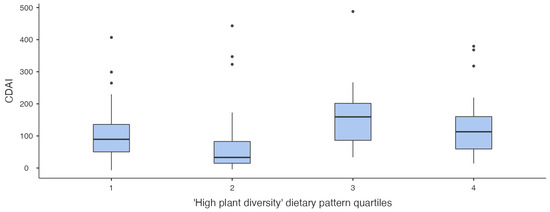 - Cosier, D.; Lambert, K.; Batterham, M.; Charlton, K.; Hold, G. Positive relationship between plant diversity dietary patterns and disease activity in Australian adults with Inflammatory Bowel Disease. Proc. Nutr. Soc. 2024, 83, E68. [Google Scholar] [CrossRef]