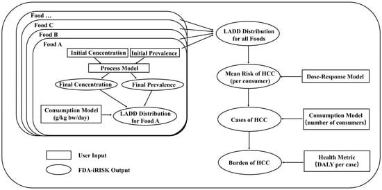 FDA-iRISK 4.2 (iRISK), comprising four pivotal components: hazard, food, process, and risk scenario modules, was utilized to estimate lifetime chronic dietary exposure to ∑5AF and corresponding HCC burden [48]. Figure 1 shows the technical route.