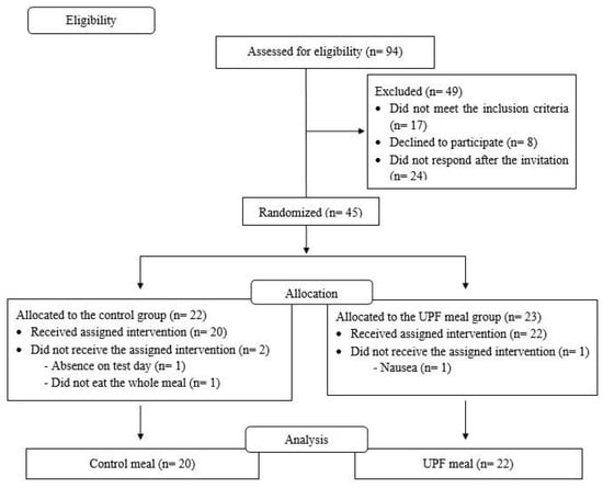 | UPF Meal (n = 22) | Control Meal (n = 20) | ||||