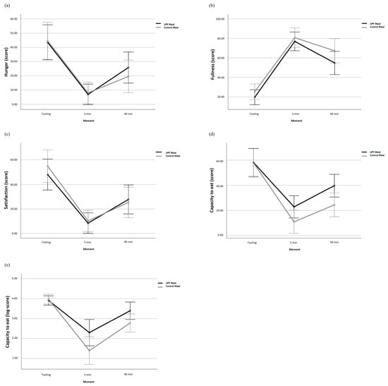 | UPF Meal | Control Meal | p-Value a | UPF Meal | Control Meal | p-Value a | UPF Meal | Control Meal | p-Value a | UPF Meal | Control Meal | p-Value a | ANOVAb | |