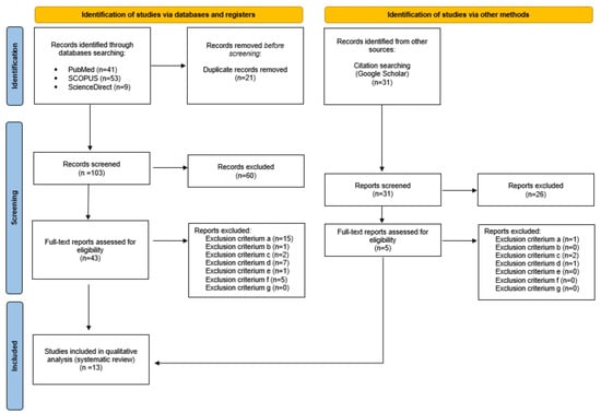 - Page, M.J.; McKenzie, J.E.; Bossuyt, P.M.; Boutron, I.; Hoffmann, T.C.; Mulrow, M.D.; Shamseer, L.; Tetzlaff, J.M.; Akl, E.A.; Brennan, S.E.; et al. The PRISMA 2020 statement: An updated guideline for reporting systematic reviews. BMJ 2021, 372, n71. [Google Scholar] [CrossRef] [PubMed]