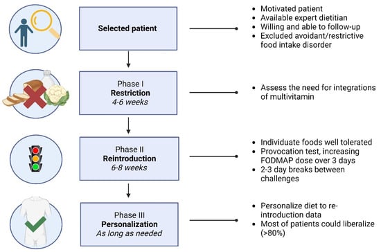 - Sultan, N.; Varney, J.E.; Halmos, E.P.; Biesiekierski, J.R.; Yao, C.K.; Muir, J.G.; Gibson, P.R.; Tuck, C.J. How to Implement the 3-Phase FODMAP Diet Into Gastroenterological Practice. J. Neurogastroenterol. Motil. 2022, 28, 343–356. [Google Scholar] [CrossRef]