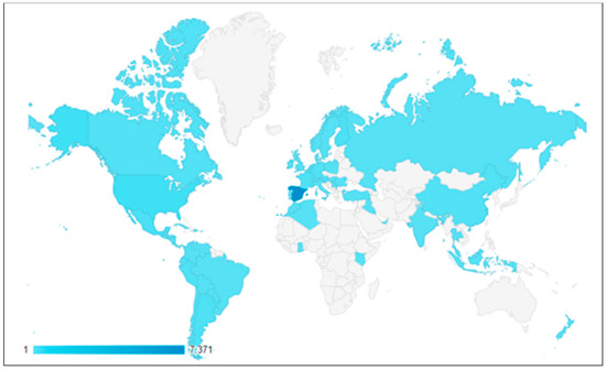A mapchart of Odimet® users was stablished by Google analytics (Universal Analytics, version 6 April 2023, accessed on 19 November 2023).