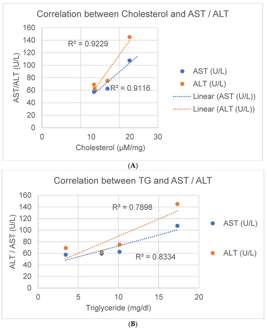 3.7. Correlative Analysis of AST and ALT Changes with Lipid Levels