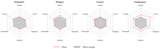 The caloric expenditure of each position can influence body composition due to the specific performance of each position [45]. This makes it important to assess nutritional needs and training per subject and per position [46]. Our results provide useful female reference values for coaches and physical trainers that could add interest and improve their testing protocol for the talent identification process, as detailed by Lemoyne et al. [14].