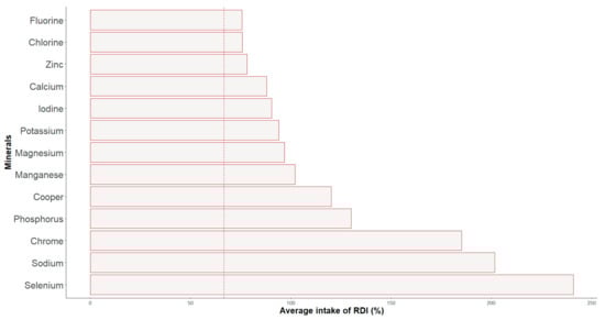 Figure 3. Percentage of adjustment to the RDIs of minerals’ intakes.