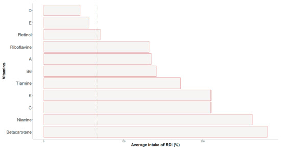 Figure 4. Percentage of adjustment to the RDIs of vitamins’ intakes.