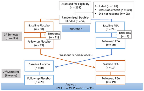 - Ghazizadeh-Hashemi, M.; Ghajar, A.; Shalbafan, M.R.; Ghazizadeh-Hashemi, F.; Afarideh, M.; Malekpour, F.; Ghaleiha, A.; Ardebili, M.E.; Akhondzadeh, S. Palmitoylethanolamide as Adjunctive Therapy in Major Depressive Disorder: A Double-Blind, Randomized and Placebo-Controlled Trial. J. Affect. Disord. 2018, 232, 127–133. [Google Scholar] [CrossRef]
