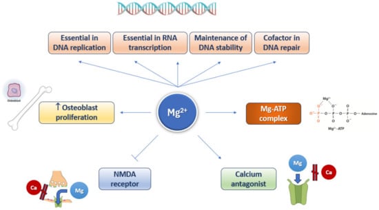 - Lima, F.D.S.; Fock, R.A. A Review of the Action of Magnesium on Several Processes Involved in the Modulation of Hematopoiesis. Int. J. Mol. Sci. 2020, 21, 7084. [Google Scholar] [CrossRef]