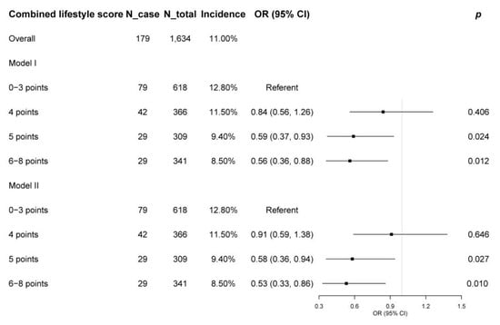 | Combined lifestyle score component | ||||||