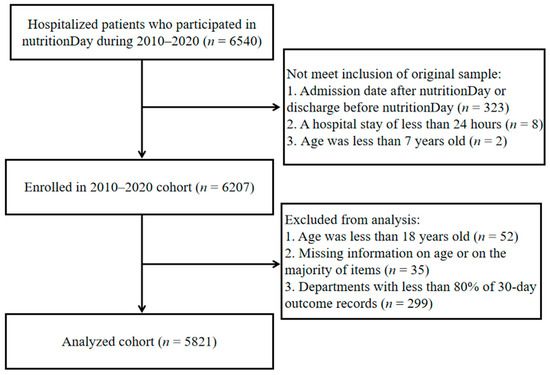 Flowchart describing the selection of study subjects (2010–2020 nutritionDay in China).