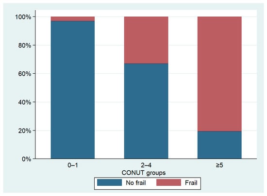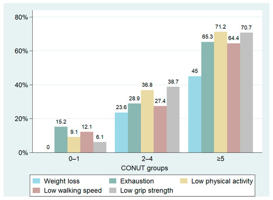 Prevalence of Fried’s criteria based on the CONUT score groups.