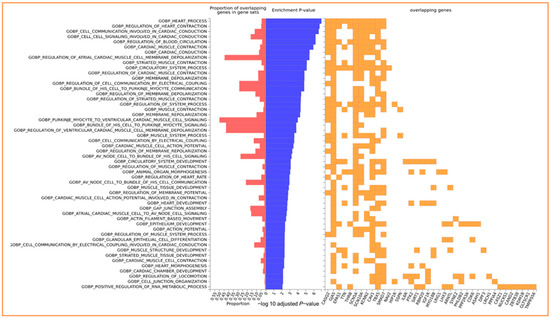 Simultaneous gene enrichment using FUMA resulted in, among others, heart process, regulation of contraction, cell communication involved in cardiac conduction, cell signaling involved in cardiac conduction, and regulation of blood circulation pathways (Figure 3 and Table S4).
