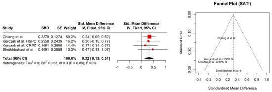 Forest plot (left) and funnel plot (right) meta-analyses of SATI.