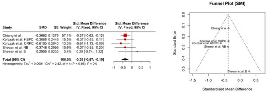 Forest plot (left) funnel plot (right) meta-analyses of SMI.