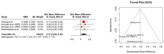 Forest plot (left) funnel plot (right) meta-analyses of VATI.