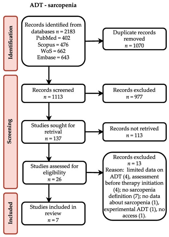 Studies included in the analysis were screened for the description of cancer and its treatment with a focus on ADT, clinical characteristics of patients, body composition, physical performance and details of sarcopenia measurement and prevalence. All retrieved details were double checked for mistakes and presented as tables. Collected data were assessed and eligibility for meta-analysis was discussed among researchers.