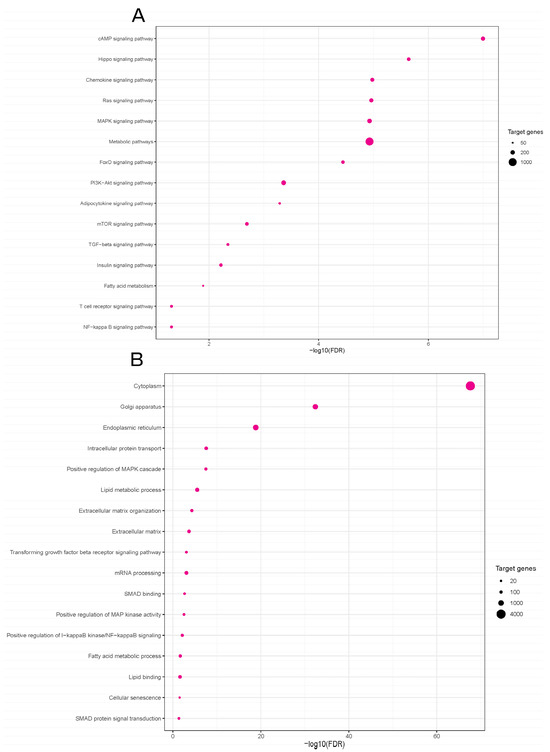 - Tastsoglou, S.; Skoufos, G.; Miliotis, M.; Karagkouni, D.; Koutsoukos, I.; Karavangeli, A.; Kardaras, F.S.; Hatzigeorgiou, A.G. DIANA-miRPath v4.0: Expanding target-based miRNA functional analysis in cell-type and tissue contexts. Nucleic Acids Res. 2023, 51, W154–W159. [Google Scholar] [CrossRef]