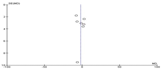 The risk of bias was assessed for the primary outcome considered in this review, which was the change in ALT concentrations. Interestingly, only one study was identified as having a high risk of bias. To examine possible publication bias, we generated funnel plots and observed a relatively balanced distribution of results. This finding suggests minimal publication bias since both positive and negative effects were equally represented (Figure 2).