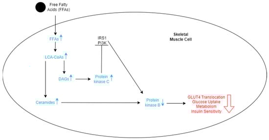 - Hegarty, B.D.; Furler, S.M.; Ye, J.; Cooney, G.J.; Kraegen, E.W. The role of intramuscular lipid in insulin resistance. Acta Physiol. Scand. 2003, 178, 373–383. [Google Scholar] [CrossRef] [PubMed]